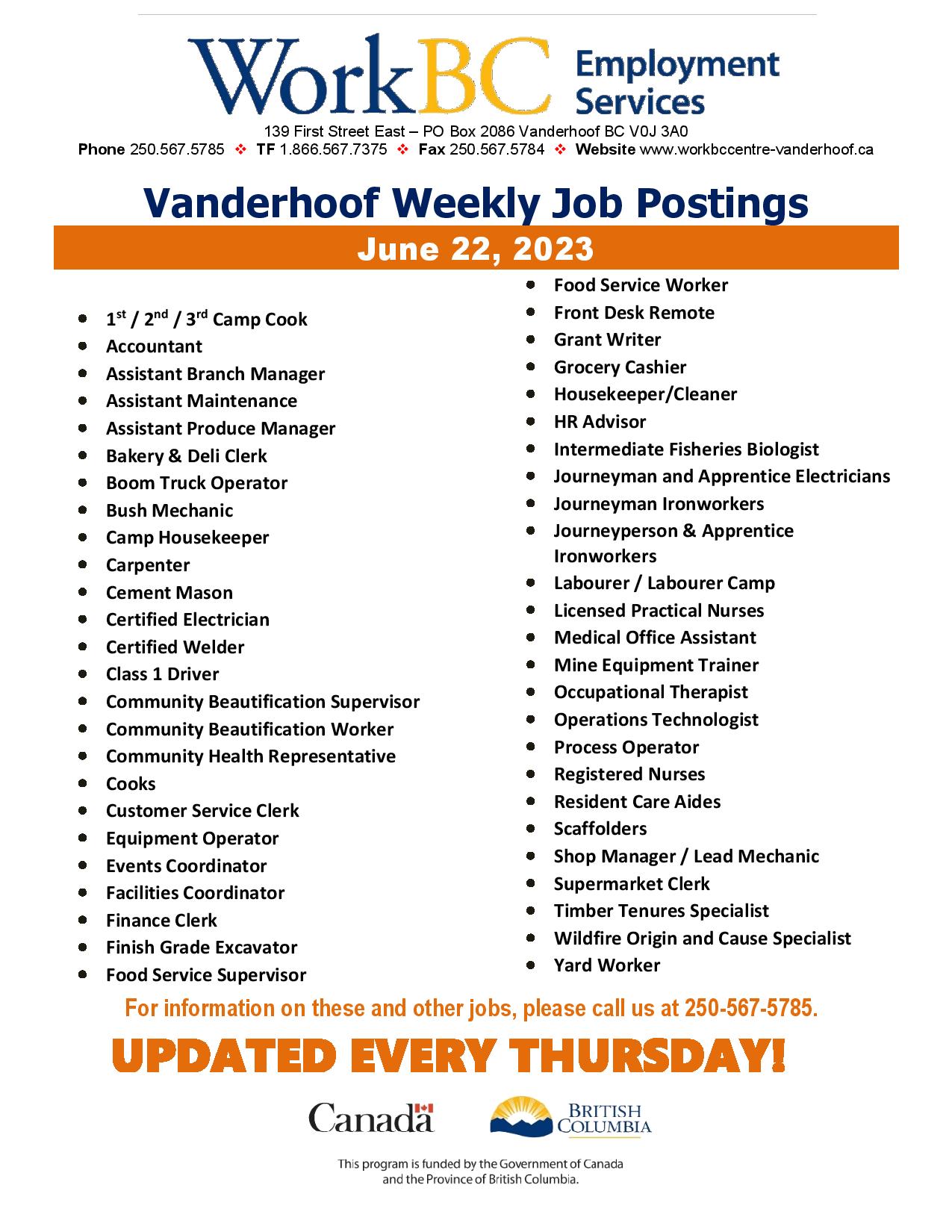 Vanderhoof Weekly Job Postings